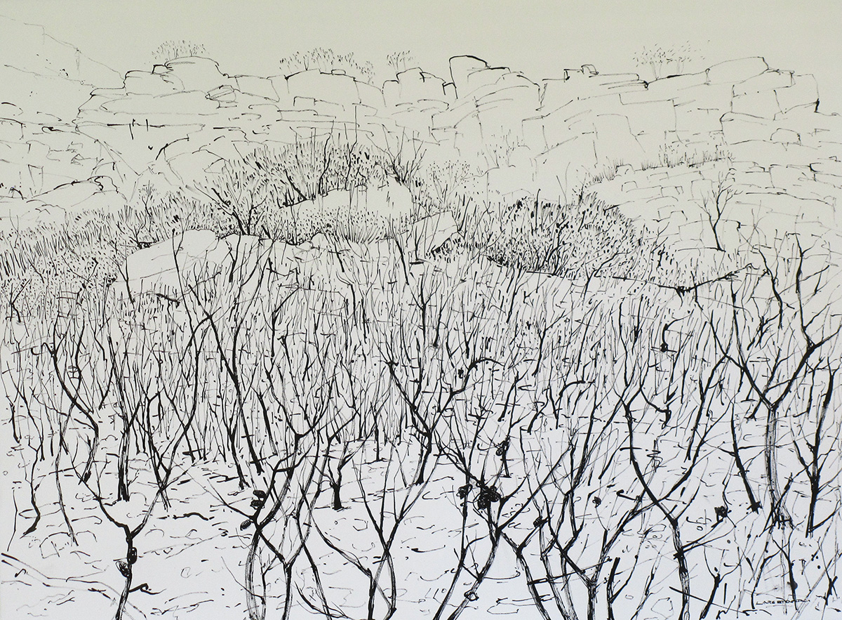 This is a sketch of the track up Mt Ohlssen Bagge, through scorched scrub and rocky outcrops. The guide leaflet says “This hike incorporates excellent reptile habitat” which doesn’t, in fact, mean the place is jumping with snakes, but that the entire ascent is over sun-baked rocks with no shade of any kind. Gruelling.
