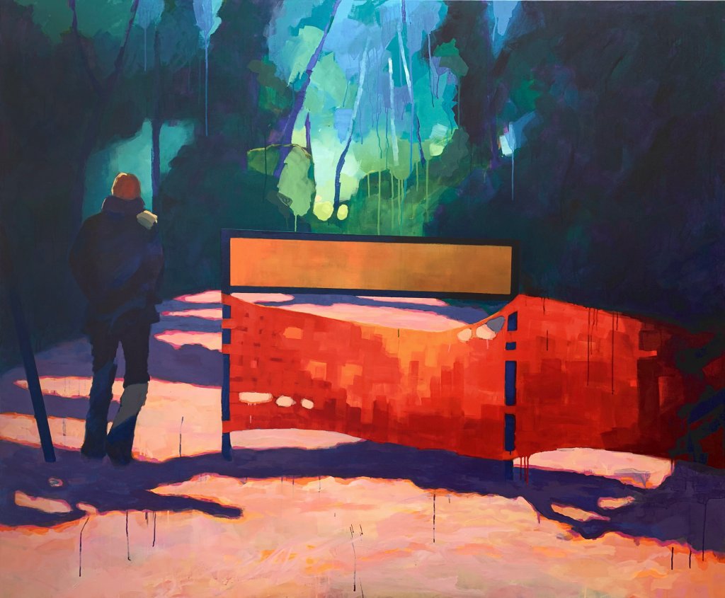 I know this explanation sounds facile but here’s what I’ve been leading up to: I don’t want to know why. I’m content to follow the lead my paintings set, and if they demand figures, they’ll get figures. Is that my partner in the painting? What’s she doing? Sure, you’re welcome to make a narrative if you want, but really, I’d just relax. It’s only paint marks.